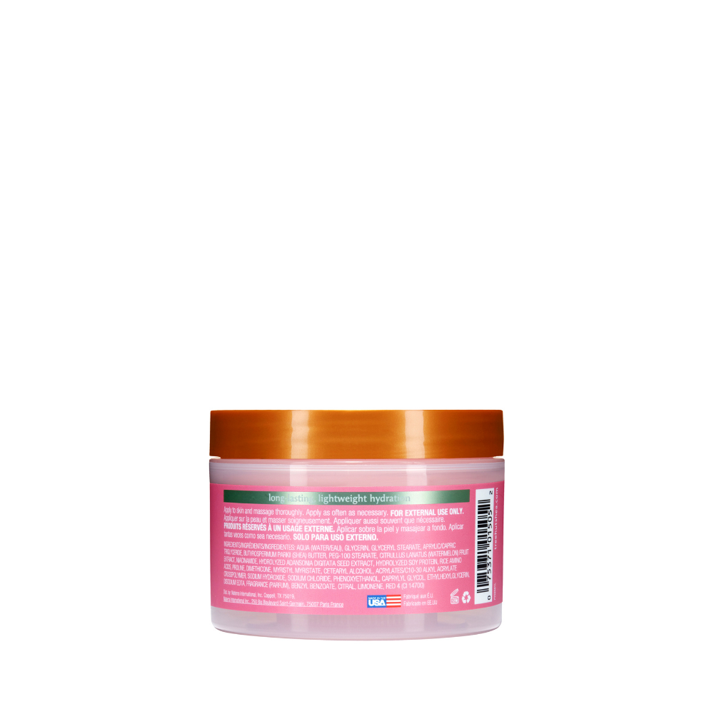Disfruta de gran hidratación con Watermelon Whipped Body Butter. Nuestra fórmula liviana y nutritiva penetra profundamente en la piel para obtener una hidratación duradera sin sensación pesada. Tu piel quedará suave y con un delicioso aroma a sandía. ¡Deja que tu piel disfrute de este tratamiento especial todos los días!