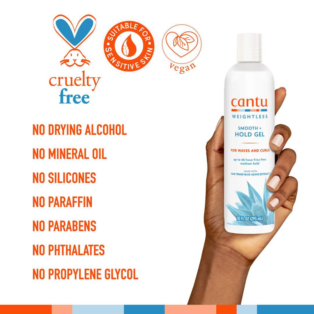 El Cantu Weightless Smoothing Hold Gel es ideal para quienes buscan una fijación duradera sin sacrificar la flexibilidad del cabello. Su fórmula sin alcohol no reseca ni deja residuos, ayudando a mantener los rizos en su lugar mientras controla el frizz y aporta brillo.